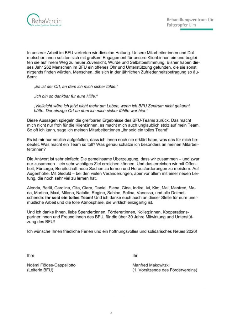 Zudem wurde an diesem Abend für das Behandlungszentrum für Folteropfer Ulm (BFU) gesammelt, um dessen wichtige Arbeit zu unterstützen.